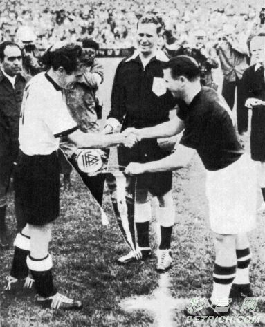 ����1954�꣬��������籭����ʿ���У����¶��ھ������������3��2�����������ӣ���ȡ�˸ý����籭�Ĺھ���ͼΪ�ھ���ǰ��˫���ӳ���˹��ʲ(������)���߶��ص��������֣���������Ǵ��У����¶ӳ������Ѿ�����һ�����籭��