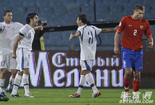 ����ʱ��7��18�գ�2008ŷ����Ԥѡ������չ�����ᣬ��������ս�У�����˹�ͳ�1��2������ɫ�У�����Ӣ�������»�ó�������Ȩ�����һս����սƽ���޵��Ǽ���ȷ�����ߡ�ͼΪ��ɫ�н��򹦳��Ͷ����������ף����