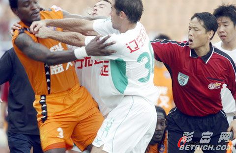 ������ȫ����������Ƶ�һĻ������������Ա��Ƶ��Ⱦ�ơ��ൺ�ӹ����ڵ�70���Ӳ��������˹�õ����ƺ���Ԯ����Ҳ���ʼ�į������������ս��������ͣ��ʱ��95���ӣ��ൺ��ǰ�沼�����˵��ڱ��߸���������������������Ȼ���������漣����ʱ�ļ���������ǰ���������ϳ����⣬����һ�ٶ�ȴ��ŭ���ൺ�ӵ���Ա�����Ӿ�ͷ����ؼ�¼��3�Ž��޴�Զ���ɳ۶��������Ⱥ�������ƿ�����һ��ҲҲ��������������Ա������Ա�͹�����Ա���ۼ����·��أ�����һ�Ȼ��Ҳ�������������ӳ����油��Ա��ͼȰ���ൺ�ӷ�ŭ����Ԯ��������ȴ��ȭ����ӣ���������ȭ�������й�������ס�������油��Ա�IJ��ӡ������������һ�ź��ƽ����޷��������ⳡ�������ڵ���ƽϢ��