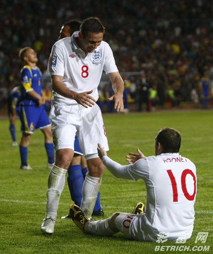 ��������ʱ��6��6��23:00��2010���籭ŷ����Ԥѡ����6С��һ������սչ�����ᣬӢ�����ͳ�4��0��ʤ������˹̹�������Ȱ�ͷ���˹������ȷ֣�³������������°볡�Ľ�������ʤ�֡�ͼΪ��������ף³�ᾫ�ʵ������š�