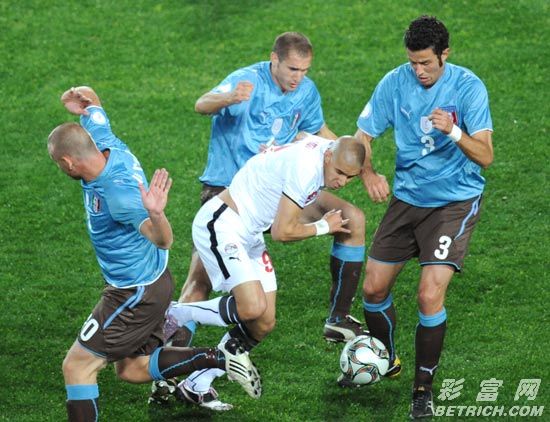 ��������ʱ��6��19��02:30(�Ϸǵ���ʱ��18��20:30)��2009�����ϻᱭB��ڶ��ֵڶ���������Լ����˹������˹��԰�򳡽��У���2006��¹����籭�ھ��������ӭս���޹ھ������ӡ�ͼΪ������ǰ���뵤��������Ӷ�Ա���С�