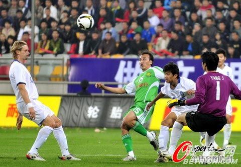 ��������ʱ��10��14��16:00��2009�г�������26�ֵ�һ���������죬����˫�������̩��ͱ�����������37����ë��һ�ε��������ǻ��⣬�°볡˫�����������һЩ���ᣬ��83������ΰһ�����䱻̩���Ա���������Ͼȳ�������˫����0-0�����׾�����ս���󱱾�������42���صǰ��ס�ͼΪ��ΰ���������š�
