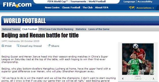 ����ɽ����������FIFA�������ֺ�� ���ʿͳ���ƽ�� 2009-10-16 15:11:00