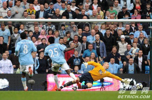 ��������ʱ��4��11����23ʱ��2009/10����Ӣ�������򳬼�������34��չ�����ᣬ��������5��1��ʤ����������ά˹�Ȱ�ͷ����°�Լ�Ͱ�Ŭ�¹�÷�����ȡ�ͼΪ���ǶӰ��°�Լ����ڶ���˲�䡣