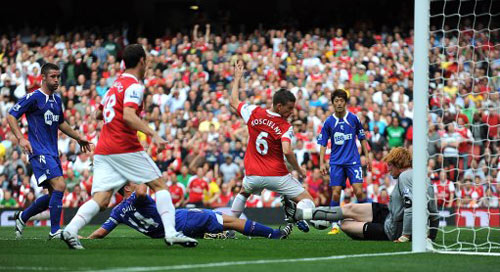 ����ʱ��9��11�գ�2010Ӣ������������������4�ֱ������죬��ɭ��������������ӭս�����ٶӡ�ͼΪ�����а�ɭ�ɺ�����˹�ж�������ǰ��׽ս����