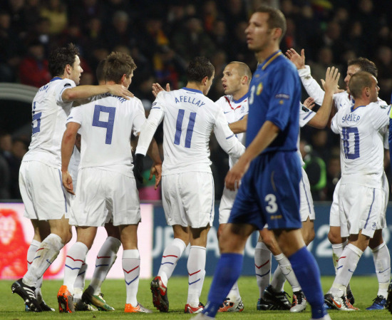 ��������ʱ��10��9���賿��2012��ŷ�ޱ�Ԥѡ����3�ּ������У�E��Ħ����������ӭս�������ͼΪ������Ա�������