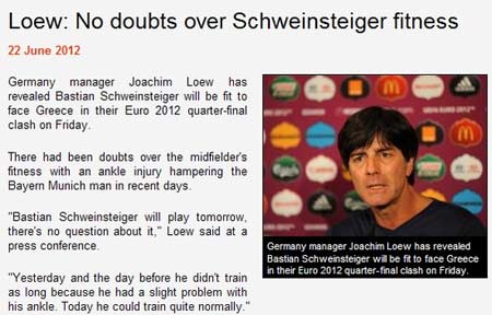 ����ŷ������ʱ�䱾���壨22�գ���20��45�֣�����ʱ��23���賿2��45�֣���2012��ŷ�ޱ�1/4�����ĵڶ������Ὣ�ڸ�˹�˾�����չ�����ɵ¹�����ϣ������˧�շ�����ǰ���ŷ�������֤ʵ��ʩκ��˹̩����Գ�ս�� soccerway���շ�֤ʵʩκ��˹̩��ɳ�սϣ�� ����������գ���С�����Ľ���һֱ���ˣ������շ�֤ʵ���ʶӸ����������⣬��ʩκ��˹̩���������������Ǻ������ʵġ�ǰ������죬��û��ѵ����ô�ã���Ϊ���Ľ����������⡣������Ӧ��������ѵ����������ζ��С�����ͺյ�����������˫������