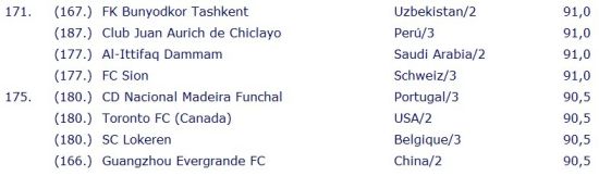 IFFHS���ֲ�����:���9λ ��������ʱ��7��3����Ϣ��IFFHS����������һ�ڵ�������ֲ�400ǿ���������г��������֧��ѡ������ھ���ɱ���ǹ�16ǿ�Ĺ��ݺ��������175λ�����������г��Ǿ���������������396λ��ֵ��һ����ǣ������ǹڰ�ǿ����ɳ�����ٹ��¶�������133λ�����ں��