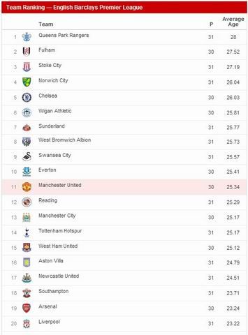 ������������Ӣ�����ְ�ǰ�е���ӣ����ǵ�ƽ�����䶼�ȽϺ�����������25.29���������Σ���ħ���м���˹�ƶ�˹������˹�����ij��Ͻ���Ҳ����ά�����ˡ���˹����쳶�������С������������ˡ��������������ڵ���֮�����Ա�������ڻ��ְ��2����3�����Ǻ��ȴ̵�ƽ�����䶼��25.17�꣬�ж������Դ�Ҳ��26���ͷ��Ϊ26.04�ꡣ
