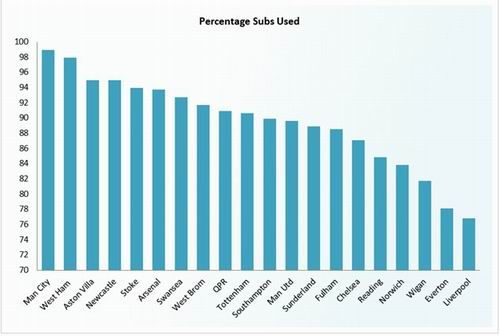 ����Ϊ�ˣ�Opta������Щ���ݵó��˷dz���Ȥ�Ľ��ۣ���һ����������ÿ���������������е��油����ڶ�����һ�λ����ڵ�46���ӣ�������ࣩ�������������һ���油����5�����ڽ�����ô�ڵ�68�����ٰ�������ȥ��