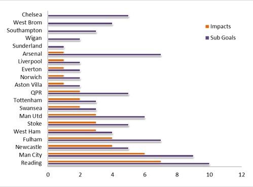 �����������Ӳ������治ռ�Ŷ��ұȷ��ϻ��������ȻҪ����Dz���油��Ա�������������ܹ��ı���档�������ǣ���Ҫ���ĸ��油�ϳ��Լ��ɶ��ٸ��油�ϳ��������Ƿ�����ܹ��ı���ƣ�Ϊ�ˣ�Ӣ��Opta���������صط����˱�����Ӣ��20ǿʹ���油������Լ�Ч���� ������Ȼ����Щ��Ϊ����Ա���ˡ���������ԱȾ����滻�Ϸ�����Ա�����Ҳ����˧�������˵�ԭ������������Ϊ�˼�ǿ��������ϣ��ȡ�øı���ƵĽ�������Ƿ��������أ� ��������ʱ��α��� ����Ȼ���Ҫ���油�Ƿ��ܹ��������á�����Ȼ����ֱ�ӵ����ݣ���Ȼ������㻻�ϵ��Ǻ������г������Ž������ǽ���Ļ�����Ȼ������Ӣ��������1734�λ����У�ֻ��87�˴��油�ϳ������ʸոճ���5%�����������油��Ա����������ӣ���֧Ӣ����β��ӵ�84�λ����оͽ���10������ռ11.9%���油���ٽ������ɣ��������è���油��88����Σ������ֻ����1����Ҳ���ܹ�����Ϊʲô���������������� ����ֵ��һ����ǣ���46���ӣ�Ҳ�����г���Ϣ�����˵�Ч������õģ��ж��9�˴����°볡һ��ʼ�͵dz�����ڶ������˵����ʱ���ǵ�68���ӣ�Ҳ��6����Դ�����ʱ��Ļ��ˡ����油�ϳ����������ʱ�������ͷ5�����ڣ�����29%���油�������������油�ϳ����5�����ڷ����ġ� ���������油���������ӻ��ֵ�Ӱ����������Ҫ�ģ�����ǿ��İ����Ա����Ϊ����������15�֣��߾�Ӣ����һ�������˾ӵڶ���ֻ������8�֣����ڵ�3����5�ķֱ���Ŧ��˹����˹�п˳Ǻ�����ķ���������������ֺͰ�ɭ����ֱ��油������6�֡�3�ֺ�3�֣��ж���������������0�֡���Ȥ���ǣ����油�÷ְ���ǰ5λ�е�4֧��ӣ���������������Ҳ����ʹ���油��������ǰ5֮�С� �������Opta�г���Ӣ�����ְ������油��������صķ�����������ݻ��ְ�������Ȼ�߾Ӱ��ף������Ǿ��µ�����6λ��ά���Ͱ����ٶ��ֱ�����3λ��˹�п˳���ȡ��ά�����䵽��������