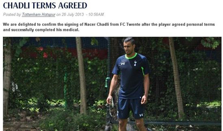 ����Ӣ������ʱ�䱾���壨7��26�գ�����10��56�֣��ȴ̹����ԡ������̸��ͬ��Ϊ�ⷢ������ƣ��ɹ�̸��ͬ��˳��ͨ��������λ����ʱ�����Ѿ�ͬ�ȴ�ǩԼ�� ���������Ǻܸ��˵�֤ʵ��������-�������Nacer Chadli���Ѿ�ǩԼ����λǰ��������Աͬ���ֲ��ͺ�ͬ��������Э�飬��Ҳ˳��ͨ������졣��λ����ʱ����Ԥ�ƽ���8��3��ͬĦ�ɸ�ļ�ǰ������ɴ����㡣���ȴ̹�����һ����������д����
