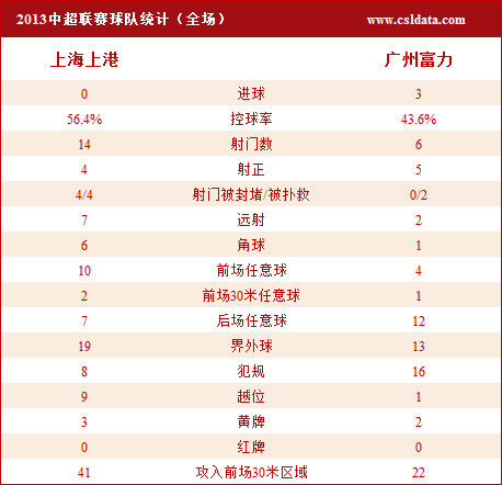 ��������ʱ��8��11�գ�2013�����г�������20�ּ������С�19��45�֣��Ϻ��ϸ۶���������ӭս���ݸ����ӡ��ϰ볡��15���ӣ��������¼��˵İ�����Ԯ��˹��һ���ƴ����������粨�ÿ����ϸ۶ӵĴ��š��°볡�ſⲼ����÷�����ȣ����հ����3-0����ʤ�֡�ȫ���������������ݸ����ͳ�3-0սʤ�Ϻ��ϸۣ������ɭӭ�����κ�ͳ���ʤ�� ͷ������ �������3�֣��Ϻ��ϸ�1ʤ2ƽ���ֲ��ܣ�19��ս�գ��ϸ۶�ȡ��6ʤ5ƽ8����23�ֵijɼ���Ŀǰ�������ְ��9��λ�á����ݸ���������2-0�������ܺ�ȡ��������6��ʤ��19�ֹ�����ݸ������Ѿ�ն��25�����֣�Ծ�ӻ��ְ��6λ���������ӿͳ�ս����⣬�����ɭ���ָ��������Ѿ�����9����������δȡһʤ�����ֿͳ���ս����������˧����һʤΪ�Լ���������ǰ����ֻ�й�һ�ν��֣��ϰ����������������0-0սƽ�ϸۡ� �Ϻ��ϸ�0-3���ݸ���ȫ������ͳ��