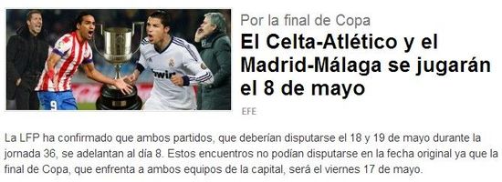��������ʱ������賿����������Э�ٷ�������2012/13�����������������ľ���ʱ�佫������������ԭ����5��18��������ǰһ����5��17�������壬�ʼ��������������ᄎ���ľ������ڵ���ʱ��������9:30�֣�����ʱ�������賿3:30�־������ݣ�Ϊ��������˫�۵�������36�ֽ���ǰ��5��8���������С� ����������������������ʱ��������£��ʼ�������������ᄎ����������36�ֽ���ǰ��5��8�ս��У��������Ͱ�������˹��ս����������������������ӭս�����ӣ���5��17�����壬�������������ڲ��������ݣ�����5��18�պ�19�գ������е�36�ֵ�ʣ��8���������ᡣ