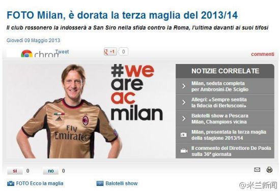 �������������ʱ��5��9�����磬�����ٷ������˰��ϴ�˹Ϊ��Ӿ�����Ƶĵ�3�����£�����ɫΪ��ɫ����ս�۽��ڵ���ʱ�䱾���������������������ı���ʱ���࣬ҲԢ���ź�ھ��Ž�ӭ����Ӳӵ�2013-14������ ���������ٷ���վ¡�ؽ���������ȫ�µĵ����������������Խ�ɫΪ��ɫ�ı������ڼ粿����3����ɫ���ƣ�����ΪԲ�죬����ڴ����о��ֲ���ͳ�ĺ��ɫ���ơ��Ҳ���ش����������������̰���ɫͼ����������ǰ����AC�������ֲ��Ķӻա�