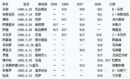 ����ʮ��ĩ���������ȫ������������2008��ŷ�ޡ���ͯ������40�˺�ѡ�������������������U21�����ŷ�����������Ա�������У��������������˹�˴ĺͿ������4����������Ա���У�����ǰ3��������������U21���Ҷ���Ա���ɺϵ��ǣ�3�˵ĸ��׶�������ְҵ��Ա�����������������Ȯ�ӡ������ƺ�����������������������������Ҷӡ���U16��U21�����ӣ�����14������ɫ��ţʿ������ǰְҵ��Ա�ĺ��ӡ�