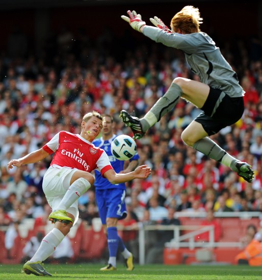 ����9��11�գ���2010-2011����Ӣ�������򳬼����������ֱ����У���ɭ�ɶ�������4��1սʤ�����ٶӡ�ͼΪ��ɭ�ɶ���Ա����ɳ��(��)�ڱ�������ͼ���Ʋ����ٶ�����Ա���񵤵ķ��ء�
