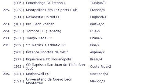 �������գ�����������ʷ��ͳ��Э��(IFFHS)��������һ��������ֲ��������г��������̩����ɽ��³����Χ�����̩����������27λ�������ܰ�ĵ�230λ��ɽ��³�������½�2λ������327λ������˼���ǣ������й������ڵ͹ȣ���̩�����������ѹ���˺���K����������������(238)����ѹ����Ӣ��������Ӱ�����(242)�Ͱ�˹��ά��(285)����ϲȵŦ��˹�������˼�����