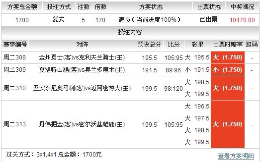 �������´�����֮�ʣ���վ���ʻ�Աfy001��ƾ��һ��3��1��4��1�ľ��������С�ַ����еý���10478.8Ԫ��Ͷע����1700Ԫ���51���ر����Ǽ������ϻ�Ա����20001219��Ϊδ���ܶ�֮����һ�������������Ƿ����н����飺