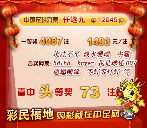 ���� �й������Ʊ��12045����ѡ9������������һ�Ƚ�4087ע��ÿע1493Ԫ����������9535348Ԫ�� �����ʸ����ֲ�ƽ̨�У����ѡ����ݲ�ƽ ����ϲ��ͷ��8ע������ˮɺ�� ����ϲ��ͷ��4ע����ţ�� ����ϲ��ͷ��3ע������������007 ���ȷֱ�ϲ��ͷ��1ע�� ������ϲ�н����ѣ���