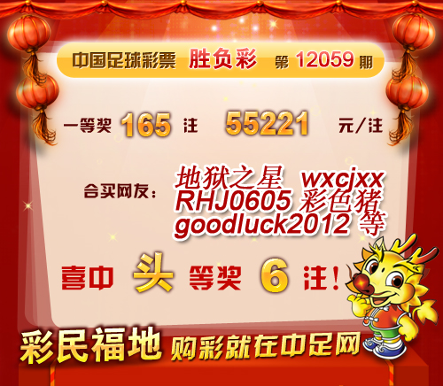�����й������Ʊ��12059�ڿ���������һ�Ƚ�165ע��ÿע55221Ԫ����������20338238Ԫ�� ���� �ڱ�վ�����У����ѡ�����֮�� ������wxcjxx ����RHJ0605 ����goodluck2012 ��������ɫ�� ���ȸ�ϲ��һ�Ƚ�1ע�� ������ϲ�н����ѣ� �����ڴ��������Ѽ��뵽��վ����������