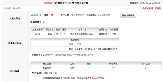 ��������ʱ��2012��10��4���賿�����12128��14�������ѽ����������ж�������������������������ɭ�ɼ��������Ƕ�˳���Ĵ�����⣬�����ж�������4-0��ʤ�������������볡ƽ���°볡��ת��ȫ��2-1�����о����ա��������յ�Ī˹��˹�ʹ���������2-3���п������ˣ������������1-1�����Ժͣ�����������1-3���а��أ��ͳ�δ�ܿ��������DZ��������һ�����¡�12128��ʤ��������23,893,356Ԫ����ѡ��ȫ������15,079,232Ԫ�� ����12128��ʤ���ʱ�վ�г�9ע���Ƚ������л�Ա��weijie0813����ʽ��������8ע����ն��165��312Ԫ�������DZ�վ��Ա��Բ�����a��ϲ��1ע����ѡ�ŷ��棺��վ�г�20ע��ѡ�ţ����л�Ա��LINLANG876������8ע����ϲ��1ע���ڴ����������е��н���Ա��ʾף�أ� ���������ǻ�Ա��weijie0813�����н����������ӣ� �����н����������й���������춼�����ݡ���Ϊ���ص�����������δ�����Ὣ���÷����ṩ�����������ǡ��ٴ�ף�����е��н���Ա��ף��վȫ���Ա˫�ڿ��֣�