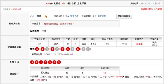 ��������ʱ��3��2�����Dz�12024�ڣ���վ��Ա"xbxl"��32Ԫ�ĸ�ʽͶ���ܻ����Dzʶ��Ƚ�2ע���ĵȽ�4ע����Ƚ�4ע�����Ƚ�4ע�����ջ�44138.00Ԫ����ʾ�����൱�����š�