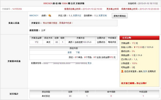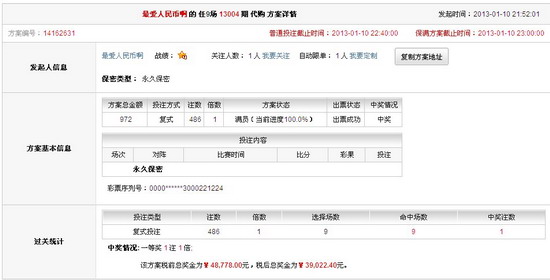 �������13004�ڿ�����ʤ����ͷ��1ע500����10111376Ԫ����ѡ��ͷ��199ע48778Ԫ���ڷ����������г����˲�С�����ţ�����������������ͷ��δ������ȡʤ���ն���0-0���ſ�Ф����������1-2�����������÷˹�����ı϶������ɵ���1-2�ܸ�10�˵İ��п����⼸���������DZ�����ʴĹؼ����ڡ� ������վ��ʤ���ʷ���ʮ���ź���δ����ͷ�����г�����������ѡ�ŷ���ȴ����λ��Ա��ն�����λ��Ա����ӵ�н���ս����ʵ��ѡ�֣����л�Ա[MMCNO1]Ͷע���Ǿ��䣬����86ע����㲩�ı����ξŵ�ͷ��48778Ԫ�Ĵ���ʽ�����ֶ�ʮ�־��ʣ� ��������Ա[���о���]��Ϊӵ�лʹ�ս����ѡ�֣�Ͷע���Ƿ�����λ����ʱ��������Ҳ�����Ͻ��� ���������Ա[�����Ұ�]������Ը����ԪͶע��������Ԫ���ر�ֵ������Ľ��