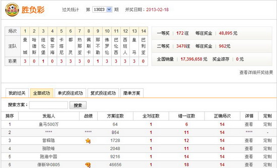 ��������ʱ��2��18���賿��ʤ���ʵ�13023�ڽ������±���������Ķ�������У����ͳ�1��4������ϰٺϷ����������Dz���˹������������ɣ�ձ�ƽ�����������У��������������������Ƕ�����ȡ����3�֣��¼ף�˹ͼ���ؿ�ʤ���Һ�ķ����ŵ����ƽŦ�ױ���Ӣ���ܱ��������Ǻ�ά�Ը��Դ�ʤ���֡�����14���ʹ����8����ʤ������2��ƽ�֡�ŷ�ⷽ����ĩ���������ΪС������������ʤ��������17,396,658Ԫ�����ξ�������16,299,068Ԫ�� ������վ�г�ʤ����һ�Ƚ�6ע�����Ƚ�111ע����ѡ�ű�վ�г�431ע������ʤ���ʻ�Ա[����500��]����128Ԫ��������ͷ����ն��ͷ��1ע������6ע������5.4��Ԫ����ѡ�ŷ����Ա[purple_1222]��990Ԫ����ϲ��45עͷ�����ջ����Dz��ơ� ����������������ţ�����ֻ�������н�ϲ��Ĺ�â���ִ�ң�մմϲ��������������ͷ���ɣ� �������Ϲ���