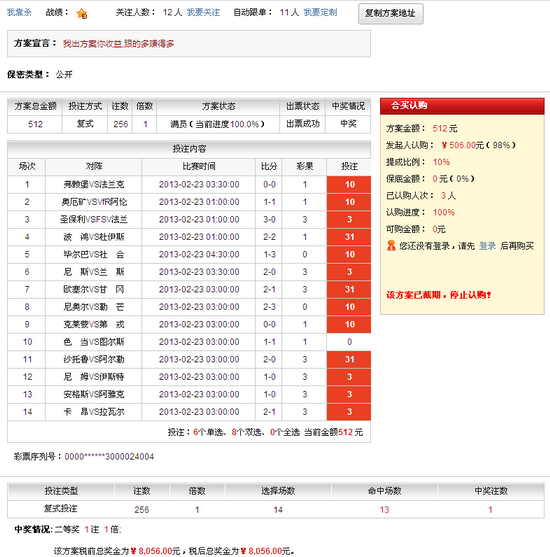��������ʱ��2��23�����磬ʤ���ʵ�13026�ڿ�������������ŷ����ʹ���737�ʱ���һ�Ƚ�������ʮ�㣬������7ע����ע����1,902,888Ԫ������Ͷע�ܶ�13,259,442Ԫ�� �����¼��У�������սƽ�����˸������ף��϶����������������ף���˹����սʤ��˹�����ҷ��ұ�����Ҳ�������ԵĴ����š�����14�������У������7����ʤ��5��ƽ���Լ�2����ʤ�� ������վ��Ա��ͷ����������λ��Ա������Ϫ�����ߡ�[���Ƹ���]�롰�ҿ�ɱ��[���Ƹ���]���ж��Ƚ�����ն��8,056.00����Ա���ҿ�ɱ��Ϊ�������� ����������13026�ڿ�������� ������վ��λ��Ա�еö��Ƚ��� ������Ա���ҿ�ɱ��[���Ƹ���]�н�����չʾ��������ַ���� ��������֮ǰ�ᵽ�����Ų��࣬���ǵ���վ��ʤ�����������Ƚ��⣬���ж�����Ա�е���ѡ��ͷ�����𣬽����������ȫ�濪ս������ŷս���������ڱ������ں����п��ܳ��ֱ�����������ϣ�����˲�רҵ�IJ��������ǽ�����������Ͷע֮ǰ�������վ�Ѿ�����������ǰհ�����������̿ڡ����������Լ������İ��գ����п���������ȡ��ף���������Ǻ��ˣ�