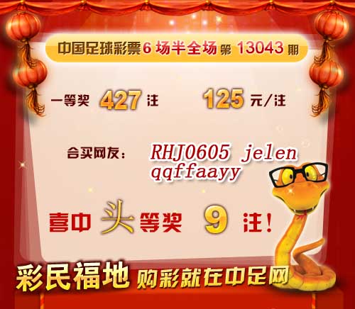 �����й������Ʊ6����ȫ����13043�ڿ�����һ�Ƚ� 427 ע��ÿע 125 Ԫ������������92,596 Ԫ�� �����ڱ�վ�����У����ѡ�RHJ0605����jelen����qqffaayy����ϲ��һ�Ƚ�9ע�� ������ϲ�н����ѣ� �����ڴ��������Ѽ��뵽��վ����������