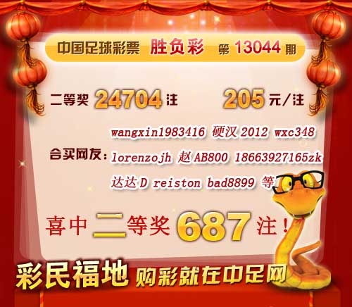 �����й������Ʊ��13044�ڿ���������һ�Ƚ� 1724 ע��ÿע 6,884Ԫ�����Ƚ� 24704 ע��ÿע 205 Ԫ���������� 26,494,220 Ԫ�� �����ڱ�վ�����У����ѡ�wangxin1983416������Ӳ��2012������wxc348������ϲ�ж��Ƚ�687ע�� ������ϲ�н����ѣ� �����ڴ��������Ѽ��뵽��վ����������