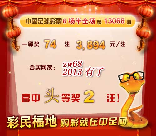 �����й������Ʊ6����ȫ����13068�ڿ���������һ�Ƚ� 74 ע��ÿע 3,894 Ԫ������������348,392 Ԫ�� �����ڱ�վ�����У����ѡ�zw68����2013������ϲ��һ�Ƚ�2ע�� ������ϲ�н����ѣ� �����ڴ��������Ѽ��뵽��վ����������
