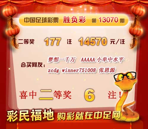 �����й������Ʊ��13070�ڿ���������һ�Ƚ� 6 ע��ÿע 1,002,917 Ԫ�����Ƚ� 177ע��ÿע 14,570 Ԫ����������13,431,932 Ԫ�� �����ڱ�վ�����У����ѡ�����һǧ��������zcdg������winner751008������AAAAAС����ˮƽ�������Ŷ�Դ�������ѹ�ϲ�ж��Ƚ�6ע�� ������ϲ�н����ѣ� �����ڴ��������Ѽ��뵽��վ����������
