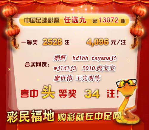 ��ǩ����13072����ѡ9������ ��վϲ��ͷ��34ע