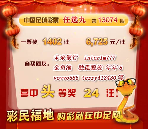 ��ǩ����13074����ѡ9������ ��վϲ��ͷ��24ע