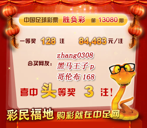 �����й������Ʊ��13080�ڿ���������һ�Ƚ�128 ע��ÿע84,483 Ԫ�����Ƚ�7470 ע��ÿע620 Ԫ����������24,138,148 Ԫ�� �����ڱ�վ�����У����ѡ�zhang0308��������������p���������ײ�168����λ���ѹ�ϲ��һ�Ƚ�3ע�� ������ϲ�н����ѣ� �����ڴ��������Ѽ��뵽��վ����������
