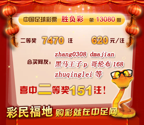 �����й������Ʊ��13080�ڿ���������һ�Ƚ�128 ע��ÿע84,483 Ԫ�����Ƚ�7470 ע��ÿע620 Ԫ����������24,138,148 Ԫ�� �����ڱ�վ�����У����ѡ�zhang0308��������������p���������ײ�168������zhuqinglei������wdb314231�������ѹ�ϲ�ж��Ƚ�151ע�� ������ϲ�н����ѣ� �����ڴ��������Ѽ��뵽��վ����������