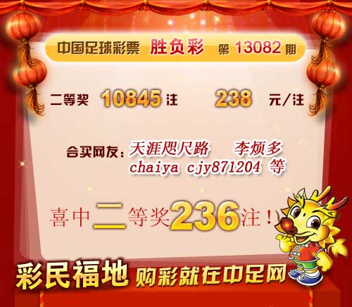 �����й������Ʊ��13082�ڿ���������һ�Ƚ� 691 ע��ÿע 8715 Ԫ�����Ƚ� 10845 ע��ÿע 238 Ԫ����������17,050,168 Ԫ�� �����ڱ�վ�����У�ϲ�ж��Ƚ�236ע�������н������鿴��ʤ���ʹ���ͳ���� ������ϲ�н����ѣ� �����ڴ��������Ѽ��뵽��վ����������