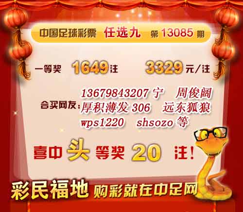 ��ǩ����13085����ѡ9������ ��վϲ��ͷ��20ע