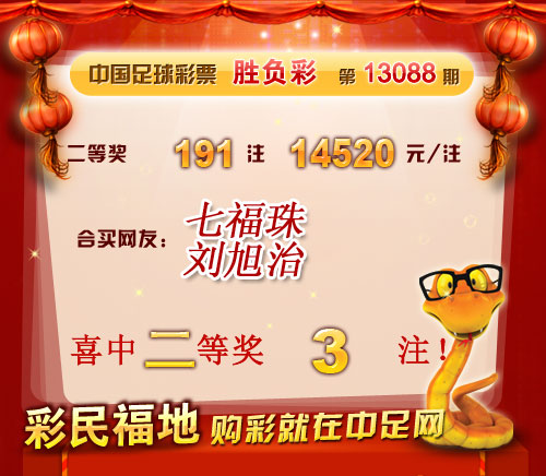 �����й������Ʊ��13088�ڿ���������һ�Ƚ� 8 ע��ÿע 1,266,682 Ԫ�����Ƚ� 191 ע��ÿע 14,520 Ԫ����������14,445,070Ԫ�� �����ڱ�վ�����У�ϲ��ͷ��3ע�������н������鿴��ʤ���ʹ���ͳ����
