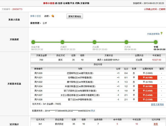 ��������8��3�յľ��������У����ӭ��13099�ڵĽ��ڣ����ʷ��湲��70�ೡ���µ�Ͷע����ʵ���140�������õ���ѡ�����ۻ����ң����������������·ɵ������У���վȴ������һƬ�н���磬���������ǿ�����Щ���˵��н������ɡ� �������ʷ��棺 ������Ա"�Ź�С����"�ھ�������ʤƽ���У����Լ�����ӵ��˽⣬�ֱ�ѡ�����������̵Ķ�����Ȼ7������û��ȫ�ԣ���������5��Ҳ���䡰�ֲ�˼������̫�ں���ʧ��2���� �����ھ���ʤƽ�������淨�У���Ա"СС���������"����һ·�����̣���С����60Ԫ�ķ���ֱ��30����8��1������ߴ�2.5��Ԫ��������ǿɼѡ� ������ʷ��棺 �������ϵľ�����Ȼ����С��������Ա��ڵ����ͷ����ȴ���Բ�һ�099��ʤ����ͷ���ߴ�5.5��Ԫ����վ����λ�˵�����Ա����������2����Ա����128Ԫ�ķ�������ͷ������Ҷ�֪��ʤ����Ҳ����14��1�Ĺ��ط�ʽ��������������ƫ�ȣ��н���Ա��Ȼ������٣�����������ѶȻ������ѵġ���λ��Ա��˰��Դﵽ��5��Ԫ���ϣ��ڴ˶��н���Ա����ף�ء� �����������棺 ����������ϴ��������ò�����������ĵ���һ��������Ŀ�ɿڴ���������Ա"Minaty"��һλ��������ϲ�����������յ���140�ೡ�����У���Ա�ٴδ�չ�ֽţ���16ԪС��ʽ��ѡ��10��������3˫7���ķ�ʽ"����ն��"���е���10��1˰ǰ����9.68��Ԫ�Ĵ�����˸ߵĴ���������ǰ�������ܲ��Ķ��أ� �����Ķ������ж������ϲ���������µľ��»����аɣ��������յ��н�֮�Ǿ������� ��Ͷעʤ���ʡ� ��Ͷע������ ��Ͷע��������