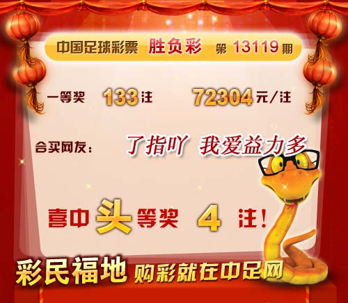 ��ǩ����13119��ʤ��14������ ��վϲ��ͷ��4ע