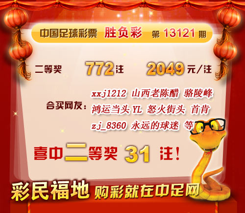 �����й������Ʊ��13121�ڿ���������һ�Ƚ� 17 ע��ÿע 217,177 Ԫ�����Ƚ� 772 ע��ÿע 2,049 Ԫ����������8,241,122Ԫ�� �����ڱ�վ�����У�ϲ�ж��Ƚ�31ע�������н������鿴��ʤ���ʹ���ͳ���� ������ϲ�н����ѣ� �����ڴ��������Ѽ��뵽��վ��������