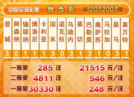 �����й������Ʊ��12007�ڿ���������һ�Ƚ�285ע��ÿע21515Ԫ�����Ƚ�4811ע��ÿע546Ԫ����������13687196Ԫ����ѡ9������������һ�Ƚ�30330ע��ÿע248Ԫ����������11797426Ԫ��