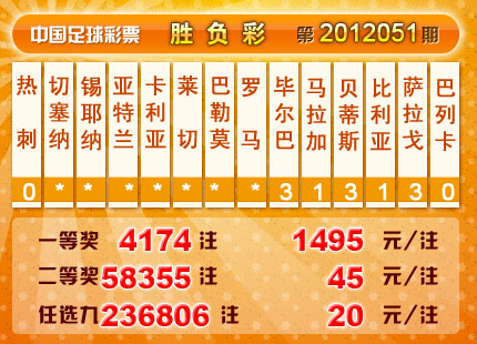 ���� �й������Ʊ��12051�ڿ���������һ�Ƚ�4174ע��ÿע1,495Ԫ ���Ƚ�58355ע����ע����45Ԫ���������� 13,930,632Ԫ����ѡ9������������һ�Ƚ�236806ע��ÿע20Ԫ����������7,592,466Ԫ��