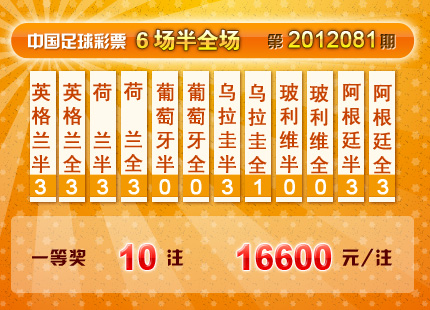 �����й������Ʊ6����ȫ����12081�ڿ�����һ�Ƚ�10ע��ÿע16600Ԫ������������259376Ԫ��