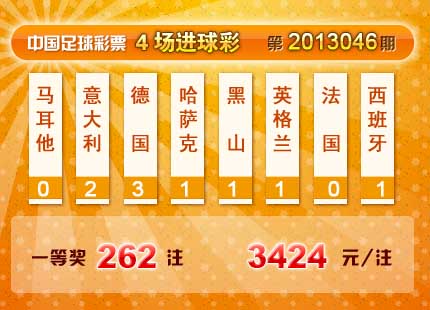 �����й������Ʊ4������ʵ�13046�ڿ���������һ�Ƚ� 262 ע��ÿע 3,424 Ԫ������������1,402,022 Ԫ��