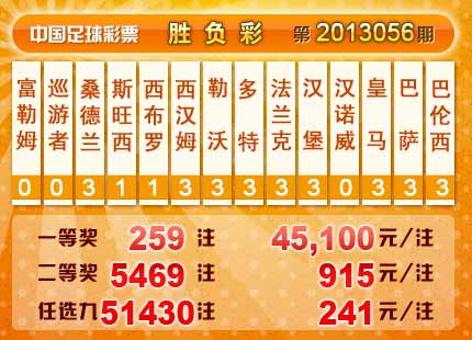 �����й������Ʊ��13056�ڿ���������һ�Ƚ�259 ע��ÿע45,100 Ԫ�����Ƚ�5469 ע��ÿע915 Ԫ����������26,073,616 Ԫ����ѡ9������������һ�Ƚ�51430 ע��ÿע241 Ԫ����������19,378,738 Ԫ��