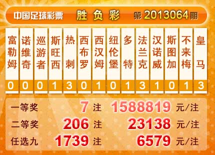 ��ǩ��ʤ����13064�ڿ�����һ�Ƚ�7ע ÿע1588819Ԫ
